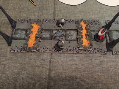 El tablero de juego se ha formado con módulos rectangulares hechos con láminas de corcho. Los tableros modulares iban a permitir una configuración de mapas infinita, eran fáciles de hacer y ocupaban poco espacio. Además creo que se acerca al concepto "pantalla" del video juego.